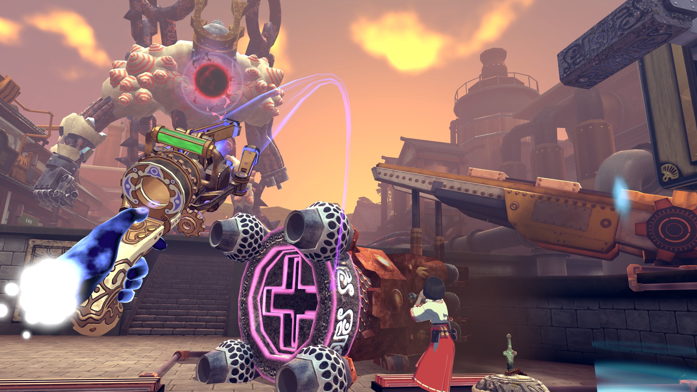 VRならではの体験性で話題を呼び、世界各国のゲームやVRイベントで数々の賞を受賞したVR脱出アドベンチャーゲーム『Last Labyrinth(ラストラビリンス)』。同作のプロデューサー/ディレクター髙橋宏典と開発チームが新たに手掛ける『オノゴロ物語 ~The Tale of Onogoro~』は、気の力と蒸気機関が融合した和風伝奇スチームパンクという独自の世界観で、フィールドに仕掛けられた謎解きや、巨大生物「カミ」との大迫力のバトルなど、プレイヤーと巫女「ハル」の、二人の冒険を描く、VRアクションアドベンチャーです。